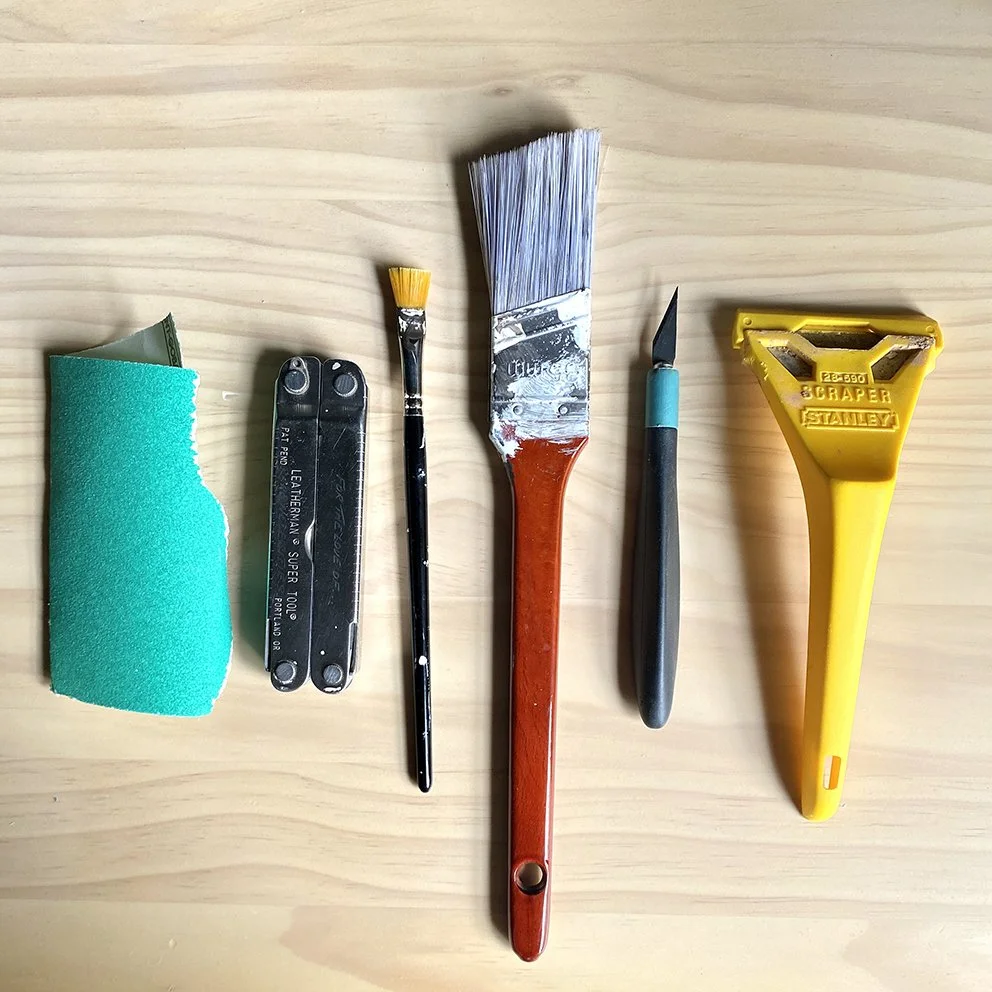 Small flat artists paintbrush if you’re not removing locks / latches, but comes in handy anyway
